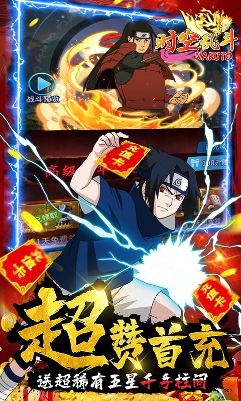 3. 充值比例为1:500,首次充值赠送极其罕见的五星忍者【千手柱间】、顶级橙色装备及高级招募券。