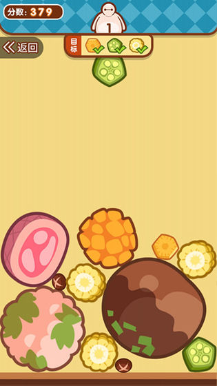 2、合成游戏里面的各种小吃,玩家用时越短分数就越高。
