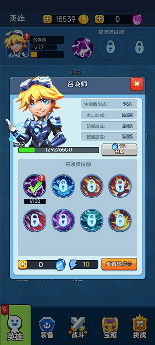 4、你也可以训练英雄使英雄变的更强,战斗起来更厉害哦;