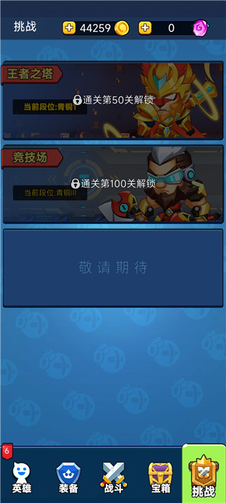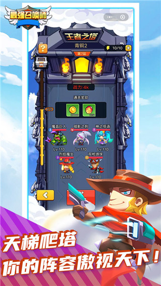 这是一款半放置挂机卡牌小游,主要特点是无需思考的一键装备操作,以及各种极其华丽的技能特效。你可以培养各种职业的超级英雄,并通过组合超级英雄来获得更强的羁绊!创建属于你的最强召唤师队伍,开始一段推图、爬塔和竞技对战的冒险之旅吧!每关都有顶级宝箱等待领取,可以获得更多的强力英雄。你还可以通过提升英雄等级、强化装备、进阶英雄和解锁技能等方式来培养他们,并根据不同职业的英雄特点,调整阵容搭配,使英雄们能够自由地进行激烈战斗,让你的阵容称霸全场。游戏除了推图战斗模式外,还有王者之塔和竞技场玩法,玩家可以在这里角逐出最强召唤师。是不是很激动人心呢?快来下载体验吧!