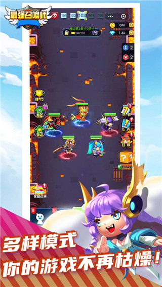 多种玩法:无需任何操作的推关战斗模式!挑战英雄强度和阵容搭配的爬塔战斗!还能与其他召唤师们进行同台竞技!
