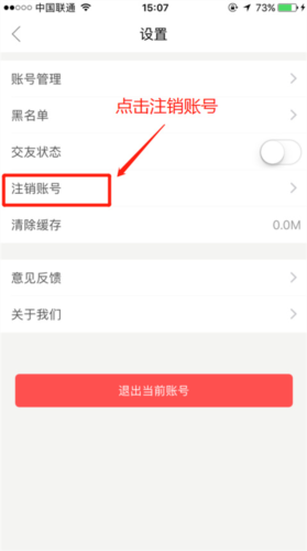 3、进入设置后,点击“注销账号”按钮,进行注销设置;