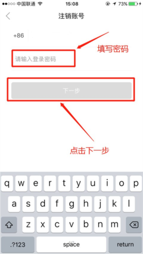 4、填写登录密码,进行本人身份验证,避免恶意注销;