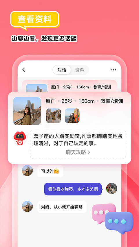 根据您的自身条件与兴趣爱好,快速推荐与您匹配的理想对象。