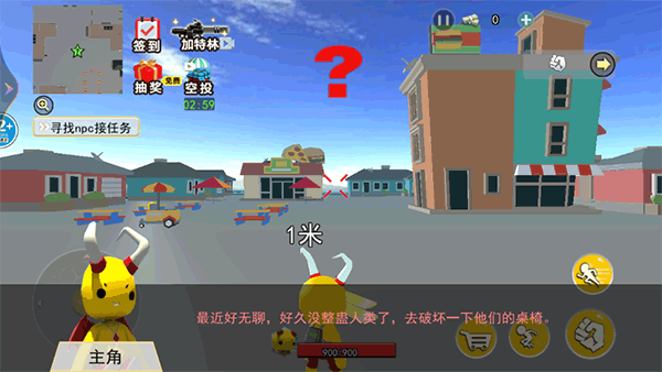 2、首先需要先找npc领取一些新手任务,例如先破坏三张桌子;