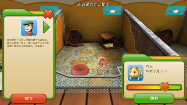 由于左侧有显示每日的访客数量,根据每个访客的需求来挑选合适的动物来饲养,从而让其满意度达到访客的要求,促使其进行收养。满意度的达成有以下方面组成: