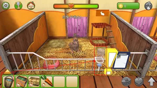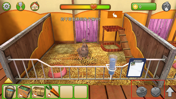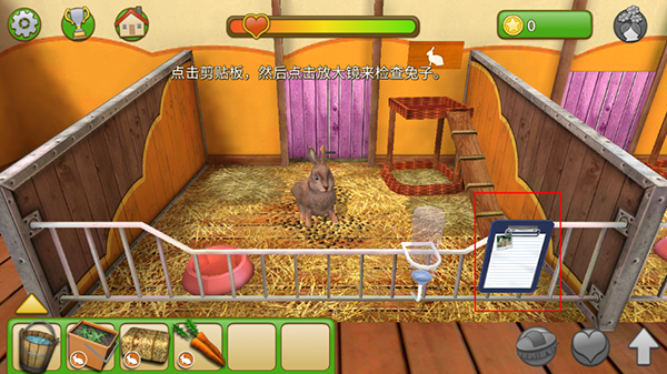 3、点击剪切板,使用放大镜检查兔子,当所有指标都变为绿色时,宠物会感到幸福美满。