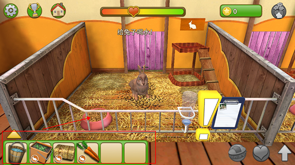 7、把水桶拖到水瓶上可以给宠物喂水。