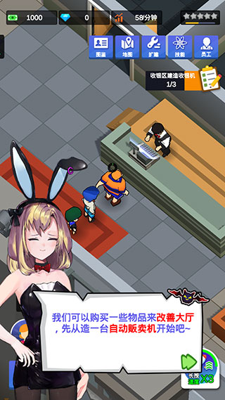 4、当你的金钱越来越多时,可以增加更多的项目来赚钱,购买更多的店铺,让客人更加满意。