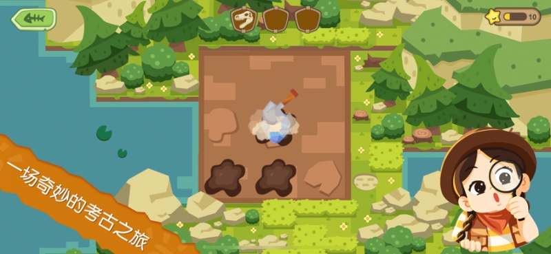 1. 游戏的配色十分清新,你可以在其中通过挖掘恐龙化石来完成更多任务。