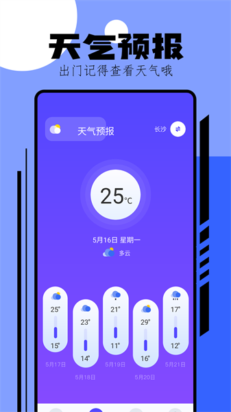 通过该软件了解当地今后几天的天气状况,提前了解气温等天气情况,做好相应准备;