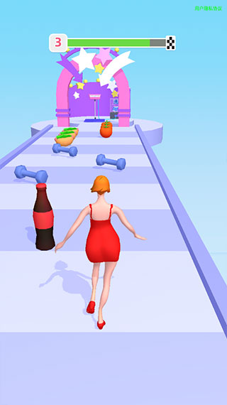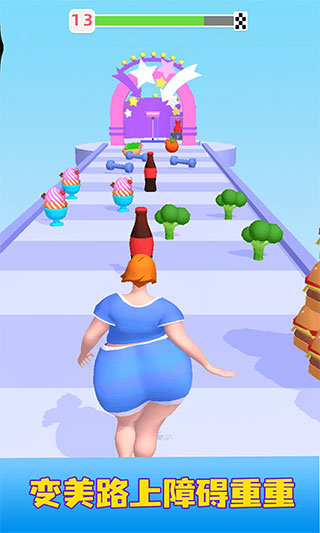 这是一款休闲跑酷类手游,其具体玩法与《高跟我最美》非常相似。在游戏中,玩家只需用一根手指滑动屏幕即可操作!众多精心设计的关卡,结合魔性的跑酷玩法,不仅在视觉上给玩家带来独特的体验,在玩法上也提供了极其魔性的游戏感受。玩家将操控一位身材标准的美女,历经重重困难到达终点。在这个过程中,你需要不断抵御路边的诱惑,如美味的汉堡和可乐应尽量少吃,多吃健康绿色的食物才能练就完美的身材。需要注意的是,玩家的体型不能过于消瘦或肥胖,因为这些都代表不健康,会导致游戏失败。如果挑战成功,玩家会获得相应的奖励,包括一套极美的衣服,穿上它你就是最美的存在。