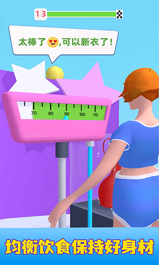 4、游戏内提供了多种道具帮助您迅速减肥,同时也有道具可能导致体重增加,请谨慎选择使用。