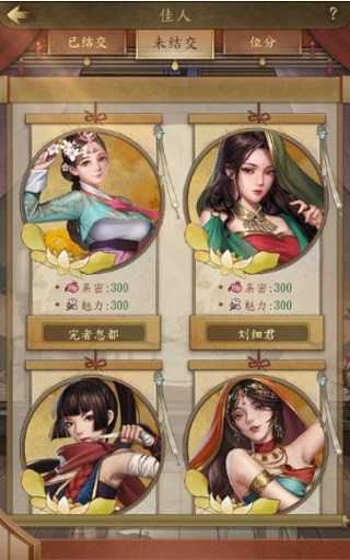2、佳人的魅力值越高,所能获取到的缘分值也就越高。