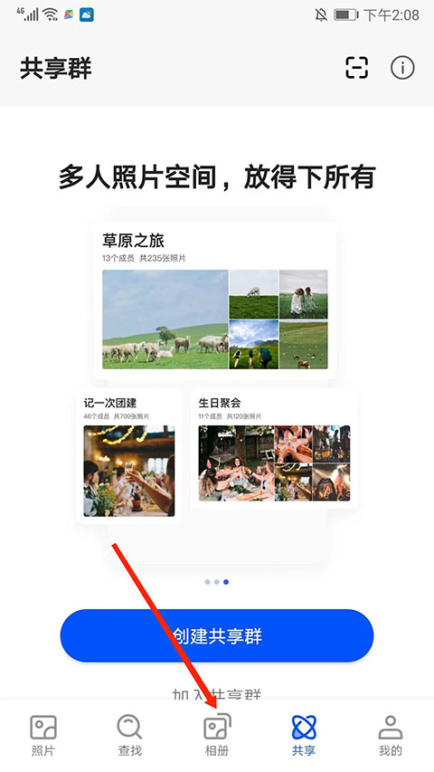 1、打开时光相册app,选择底部“相册”选项。