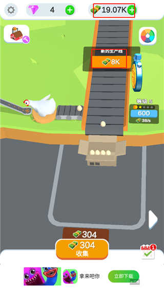 3、获取一只母鸡,这相当于拥有一条生产线,母鸡产下的鸡蛋会直接转化为玩家的收益。