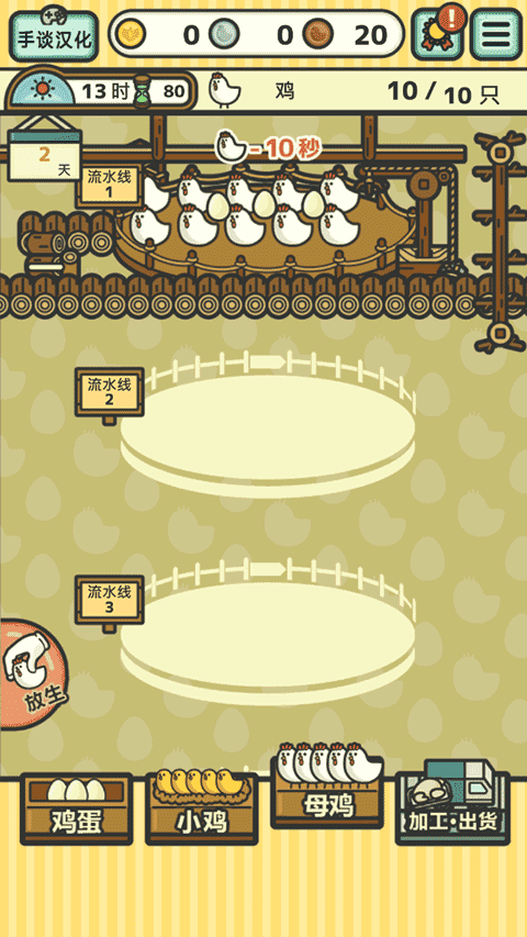 - 就是一个流水线玩法,鸡蛋长成鸡了就把它移动到小鸡窝。