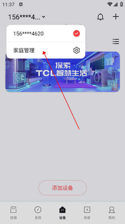1、选择左上方下拉框,进入家庭管理设置页面