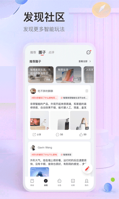 【空调】连接TCL App只需轻轻一点就能对空调进行各种设置,营造舒适怡人的室内环境,保持空气健康清新。