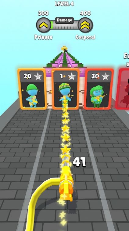 军队战斗跑是一款能够带给玩家极其有趣的 休闲 解谜 游戏,让你领略到多样的 挑战 玩法,随时都能加入游戏进行自由跑酷,指挥自己的军队在 关卡 中与敌人作战,从而获得更佳的跑酷享受。