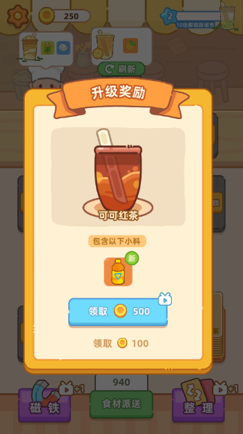 2、用于制作奶茶的食材将以卡片形式展示,每十张卡片可以作为一种可用的食材;
