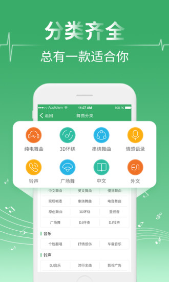 手机铃声是通过一个按钮设置的,流行的铃声每天都会更新,可以在3秒内设置。 您可以根据需要下载尽可能多的铃声