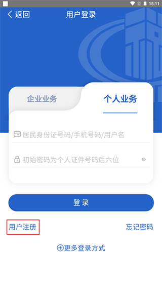 3、在个人业务页面找到用户注册并点击