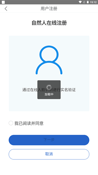 4、进入注册页面,通过人脸识别进行实名验证,跟随软件引导完成注册