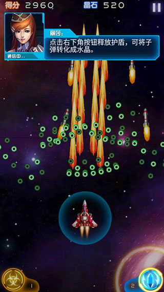 操作基本不用教学,就是用手指拖动主角的飞机,就可以移动,很简单。但是我发现很多玩家玩的时候喜欢用手指盖住自己的飞机,这样确实直观但是你看不见自己的飞机了,其实是不好躲子弹的,建议大家在主角飞机往下一点的地方操作,其实是一样的还不用挡住主角。点击屏幕左下角可以释放必杀。