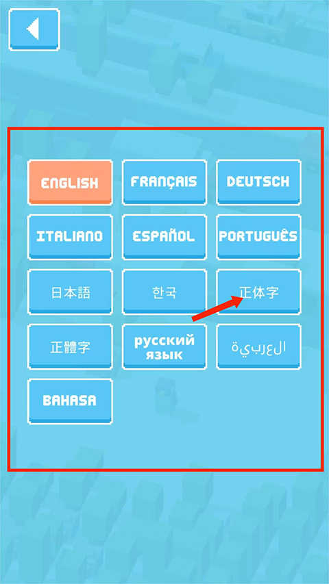 3、进入语言选择界面,包含英语、法语、日语、汉语等多种语言,选择【正体字】选项后即可切换成中文。