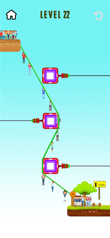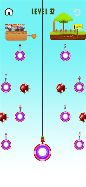 游戏的操作非常简单,但玩家需要持续关注绳索的方向,才能更顺利地通过关卡。