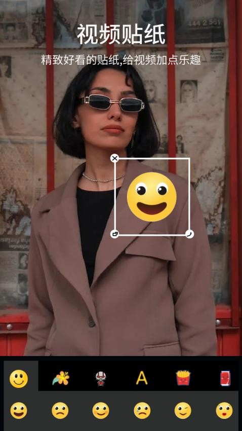 选择感兴趣的可爱贴纸添加到视频画面中让视频更有趣;