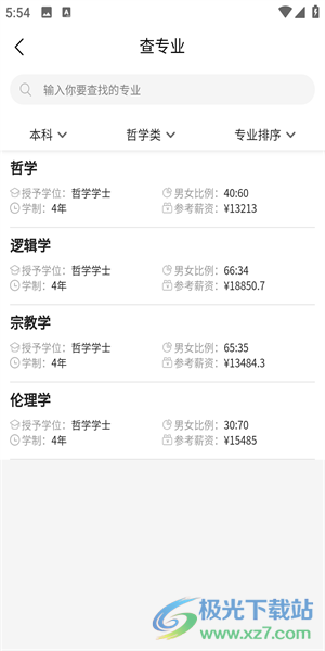 3、查专业,看看男女占比以及参考薪资,还可以搜索要查的专业。