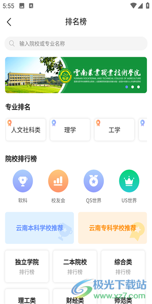 4、可以查看专业排名、院校排行榜以及独立学院、二本学院等等。
