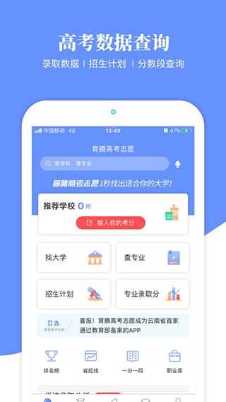 育腾高考志愿APP是一款专业的高考志愿填报软件,提供各类专业的详细信息。它能为用户提供更优质的志愿填报服务,涵盖数千所大学及专业分析。用户可以根据自身需求进行查询,了解哪些大学适合自己,并参考今年的录取分数线来做出决定。该软件有助于用户更准确地分析心仪院校的录取情况,从而选择更好的大学。若用户想了解自己适合哪种学校,可以在此APP中进行查询。