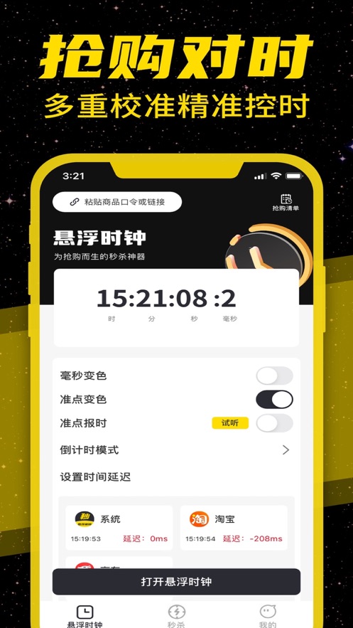 悬浮 抢购助手 是一款专业的购物工具,用户下载安装后,可绑定各大 电商平台 。如遇限时秒杀活动,软件会提前发出抢购通知,确保用户不错过任何抢购机会。该抢购助手显示的时间极其准确,能够与各大电商平台实现时间同步,无任何时间偏差。