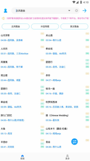 在本站下载并安装好歌词适配的应用程序,打开后进入,在搜索框内输入你想要查找的歌曲,可以是歌曲类型,也可以直接搜索特定的歌曲或歌词。