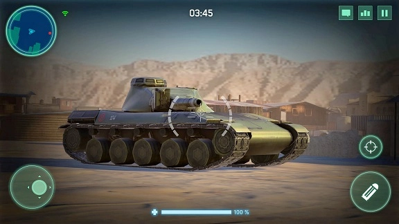 1. 借助虚拟摇杆操控坦克向前行进,在周围寻觅目标。