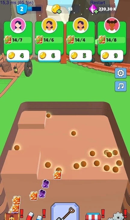 挖掘宝石是一款能让玩家挖宝石的 休闲 游戏,可以利用工具提升挖掘效率,能够让玩家非常 轻松 地完成 挑战 任务,玩法相对 简单 易于掌握,营造出一种轻松的游戏氛围,让玩家享受挖掘的乐趣,还能选择不同的角色来体验挖宝石的过程。