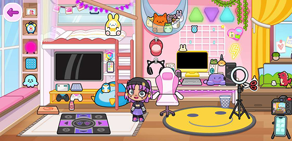 在米加小镇电玩城中,玩家可以自由地创建自己的角色、房屋和城镇;玩家可以选择自己喜欢的头发、衣服、配饰等,并通过选择和定制各种家具和装饰来打造自己理想的家;