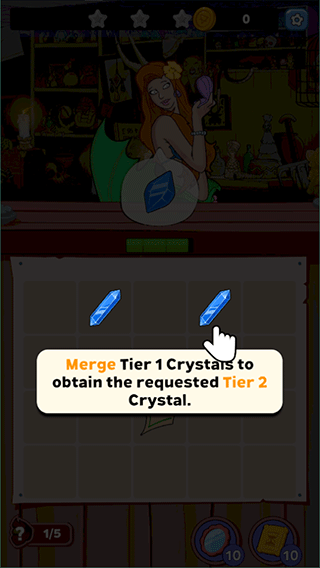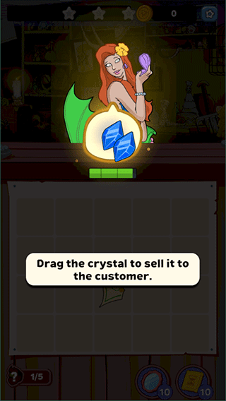 4、将合成的二级水晶拖动卖给顾客,照顾你的客户,尽可能多地赚钱;