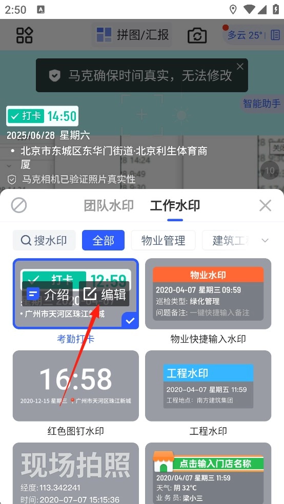 通过软件中强大的智能校准和防篡改功能,可以非常方便地将用户需要的时间、地点和项目名称添加到照片中。