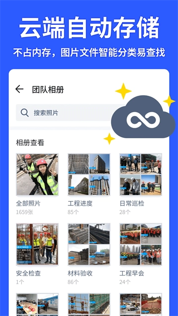 1.照片自动同步到团队,管理者可以在线管理工作团队;