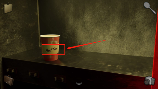 9、点击门旁边通电的设备,选择纸杯上的人名