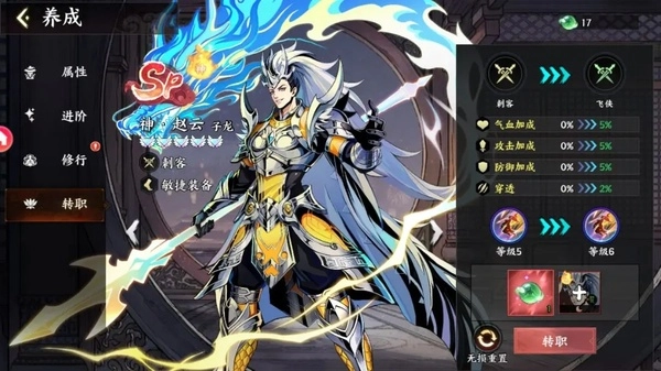 修行主要涵盖三个方面,分别为力量、速度与反应。当这三方面的能力槽均达到满值时,便可实现升阶。升阶之后,能够解锁更多的兵法槽。值得一提的是,此过程支持无损重置。每次开展修行,都能提升下方所展示的属性。