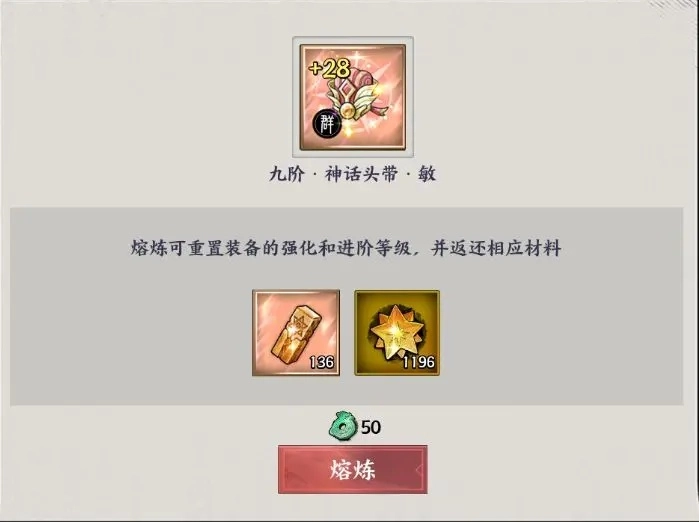 熔炼具有这样的作用:当你要更换高阶装备时,可先对低阶且已进行强化或升阶的装备进行熔炼,如此便能返还相应材料。