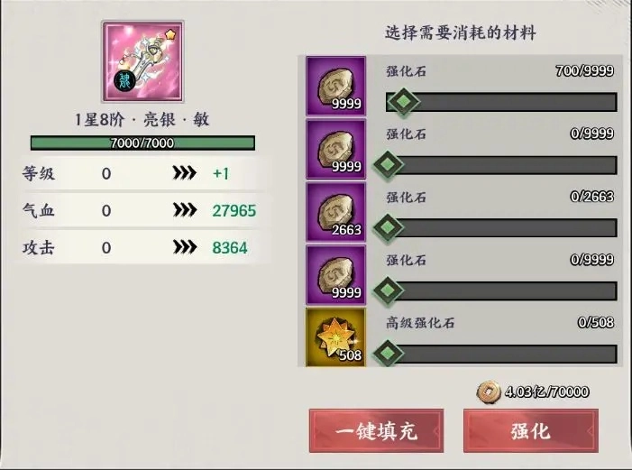 提升等级需要用到强化石以及高级强化石,它们能够为装备提供基础属性。