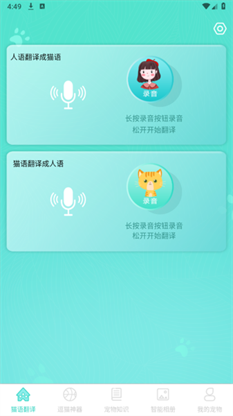 宠猫翻译是一款功能丰富的宠物翻译应用,支持在线一键翻译,能智能辨识猫叫,兼容多种语言,并可实时监控宠物健康。它具备个性化推荐和定时提醒功能,感兴趣的朋友赶快下载试试吧。