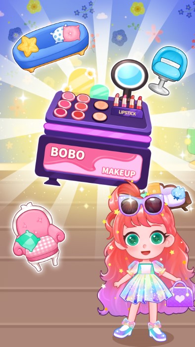 1.精致的卡通场景画面,多种多样的化妆道具,让你自由搭配使用。