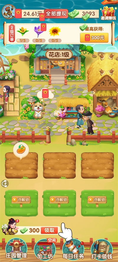 小编实测显示,玩家可以在庄园里随时种植鲜花,轻松获得零花钱奖励,边玩边赚钱,乐趣无穷。
